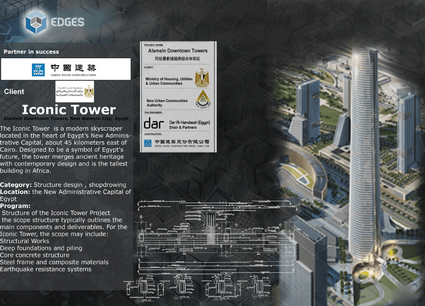 The scope of the Iconic Tower project encompasses all major structural and engineering components necessary for high-rise construction. Key elements include:
